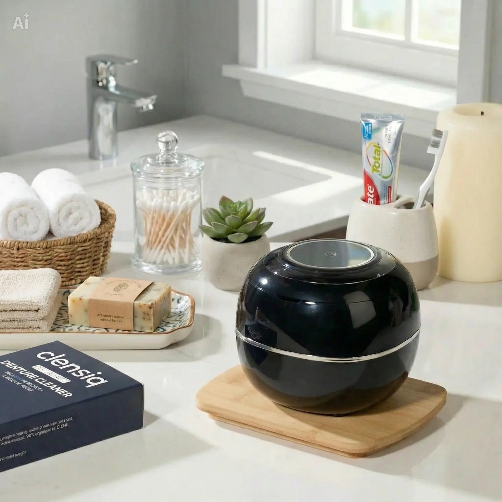 The device generates high-frequency sound waves in the water, creating microscopic bubbles. These bubbles rapidly collapse, producing a gentle yet powerful cleaning action that helps remove debris, plaque, and buildup from dentures.